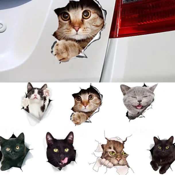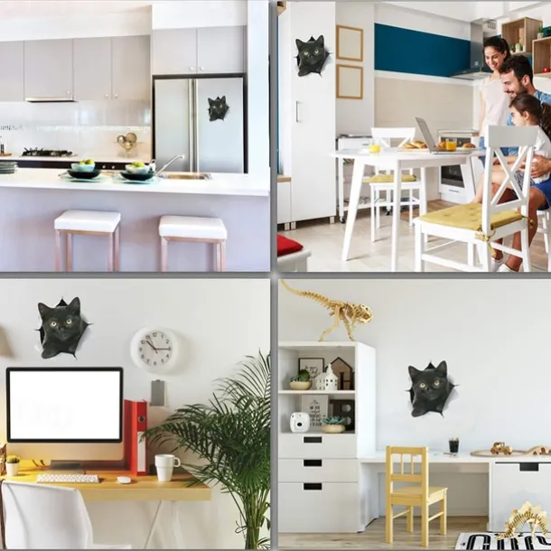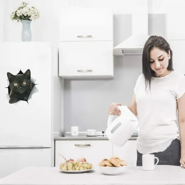 Winston & Bear 3D Cat Stickers – 2 Pack – Black Cat Wall Decals – Cat Wall Stickers for Bedroom – Fridge – Toilet – Car – Retail Packaged