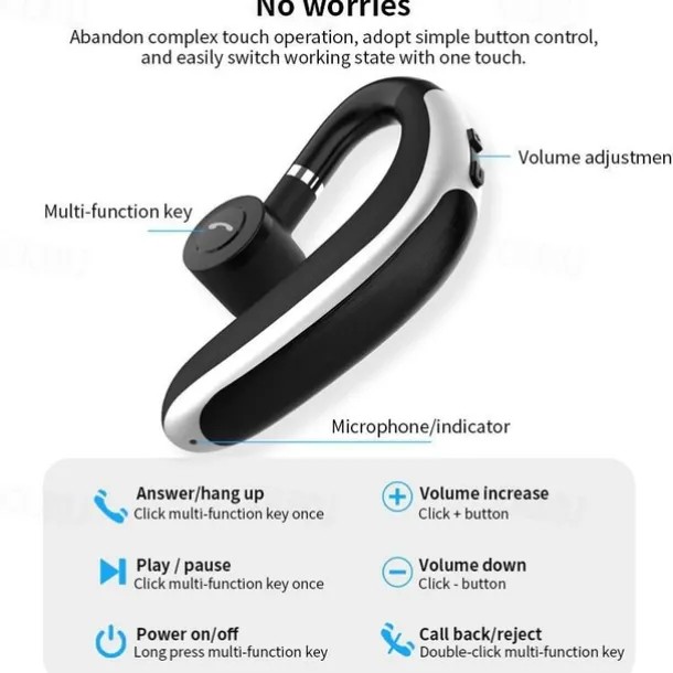4. 180° rotating earpiece: The earpiece can be freely rotated 180°, allowing you to switch between left and right ears easily. The adjustable angle provides a customized fit.