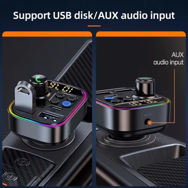 Wireless Bluetooth Car Adapter Bluetooth 5.3 FM Transmitter AUX Radio Receiver MP3 Player Handsfree Call Type-C USB Car charger