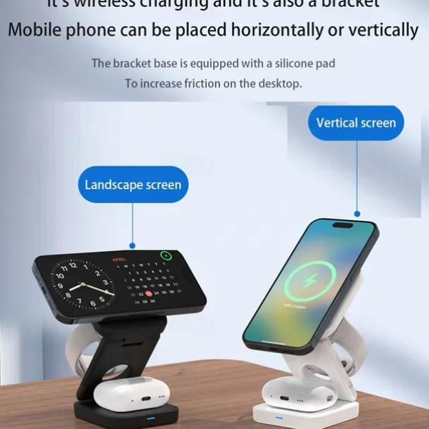 Wireless Charger 15 W Output Power Wireless Charging Station CE Certified Fast Wireless Charging MagSafe Universal For iPhone 14/13/12/11 Pro Max Universal Cellphone Gear Fit 2 R360 Apple Watch