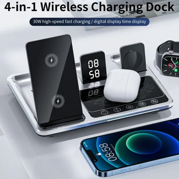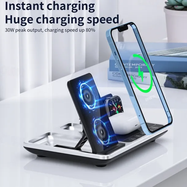Wireless Charger 30W Output Power Wireless Charging Station Foldable Charging Station CE Certified Fast Wireless Charging MagSafe 4 in 1 For Compatible with any wireless charging enabled devices