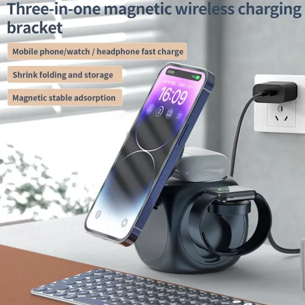 Wireless Charger Wireless Charging Station CE Certified Magnetic 3 in 1 For Smart Watch Compatible with any wireless charging enabled devices