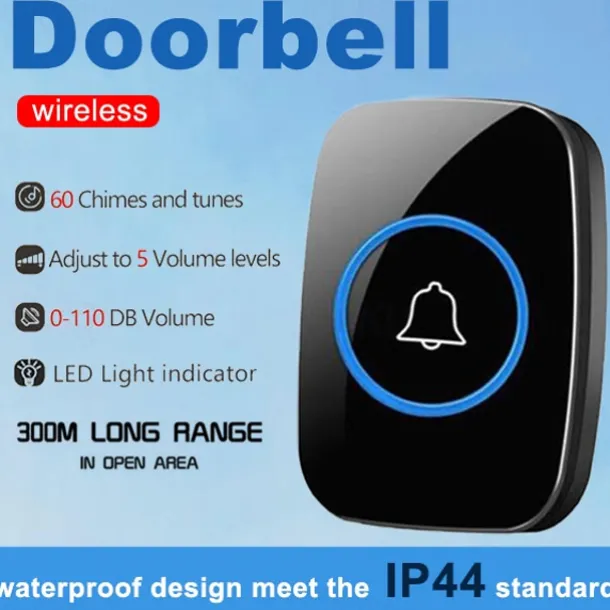 Wireless Doorbell kitPlug-in Receiverelderly pagerWaterproof Push Button with 1000 feet Operating Range 5 Volume Levels60 ChimesLED flash&CD Sound For Home/Office/Classroom Use