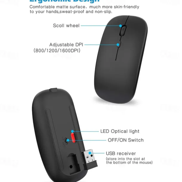 Wireless Optical Mouse Mice 2.4GHz USB Receiver Portable Mini Mice Rechargeable Adjustable DPI Levels Bluetooth Mouse Mice
