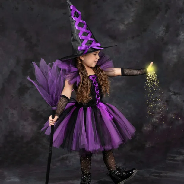Witch Halloween Dress Cosplay Costume Tutu Walpurgis Night Cosplay Kid’s Girls’ Carnival Masquerade Mardi Gras Performance Party Halloween Easy Halloween Costumes Dress Up