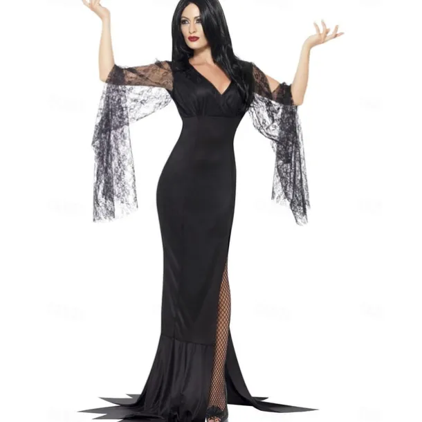 Witch Morticia Addams Halloween Dress Addams family Walpurgis Night Punk & Gothic Adults’ Women’s Party / Evening Easy Halloween Costumes Dress Up
