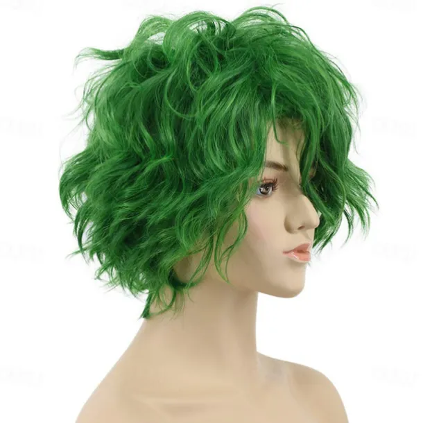 Women and Men Fluffy Short Bob Curly Green Wig Cosplay Anime Wig Halloween Wigs St.Patrick’s Day Wigs