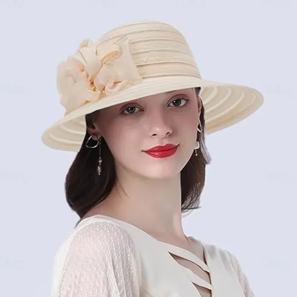 Women-Organza-Kentucky Sun Hats-Summer-Wide-Brim-Flower-Church-Hats for Tea Party Bridal Wedding Dress-Derby Hat