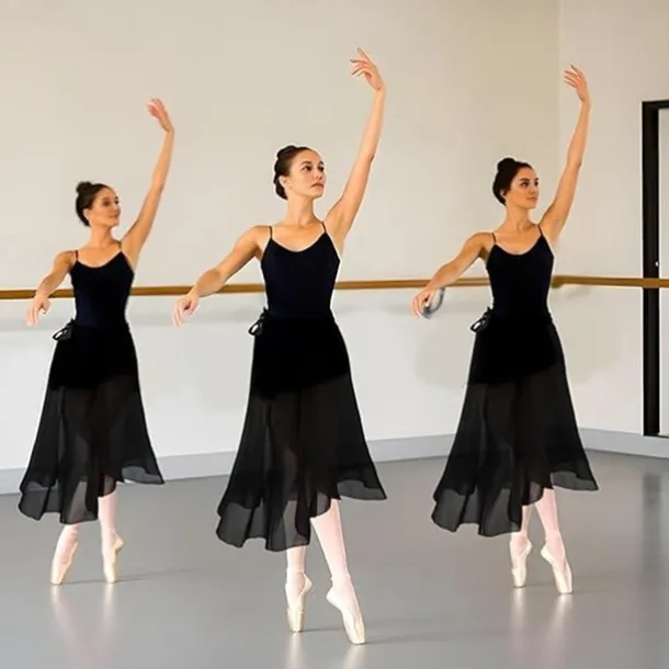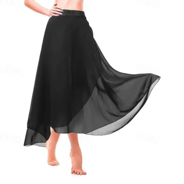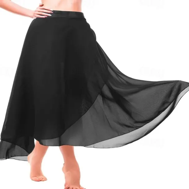 Women’s Ballet Wrap Dress Chiffon Dance Wrap Skirt with Adjustable Waist Tie Gymnastics and Ballet Dance Skirts for Women Black Dancewear