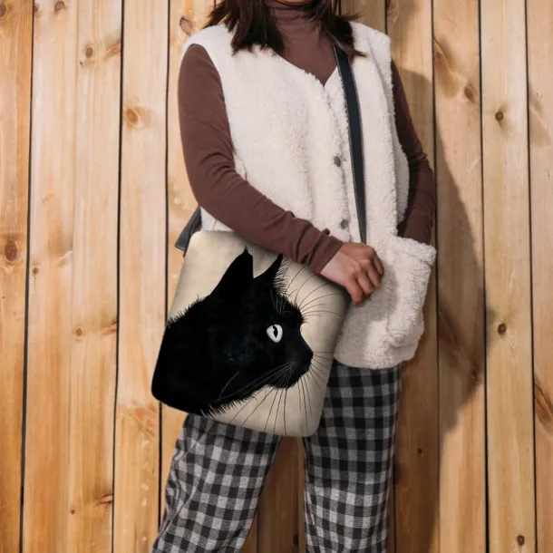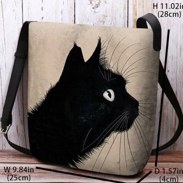Women’s Black Cat Print Crossbody Bag – Stylish Casual Shoulder Bag for Cat Lovers and Everyday Use