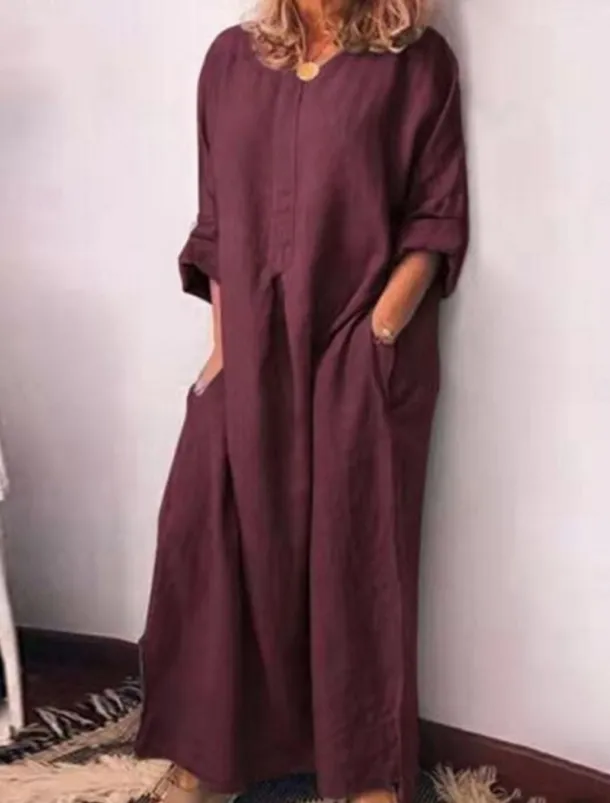 The Women’s Casual Cotton Linen Shift Maxi Dress is the epitome of modern elegance for 2023 Crafted from soft durable bamboo fabric this regular fit dress features a crew neck long sleeves and a convenient pocket Perfect for daily wear or vacation outings this dress offers micro-elasticity for comfort The non-print plain design emphasizes a sleek contemporary feel Machine washable for easy care Colors available in black yellow and wine