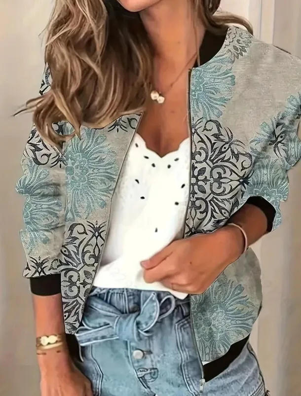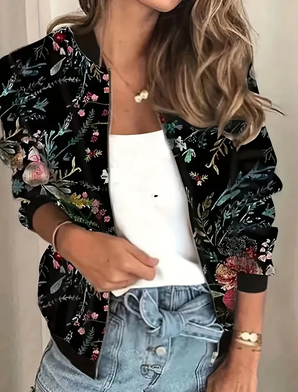 Women’s Bomber Jacket Warm Quick Dry Zipper Pocket Elegant Fashion Daily Simple Floral Vacation Casual Daily Holiday Short Baseball Collar Regular Fit Long Sleeve Outerwear Black Light Green Pink Fall