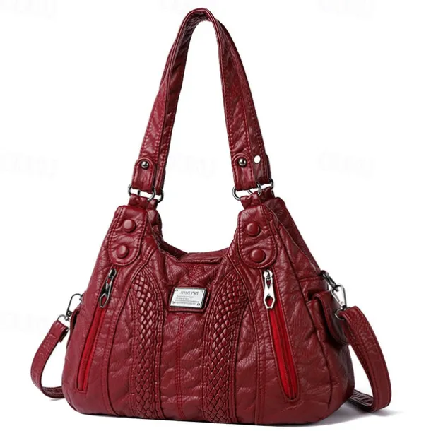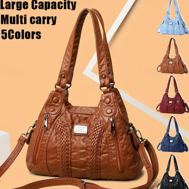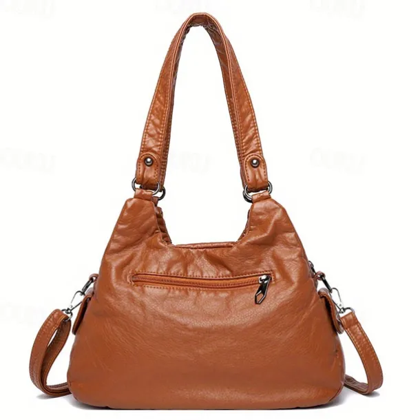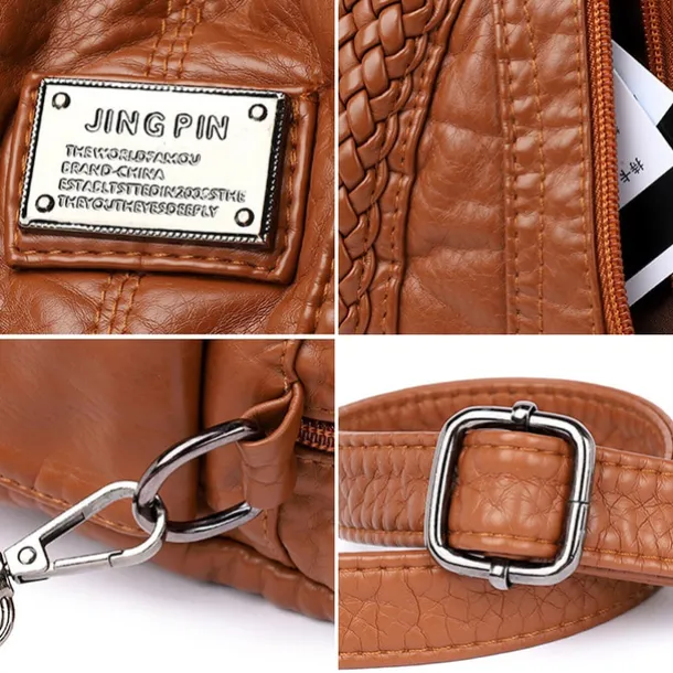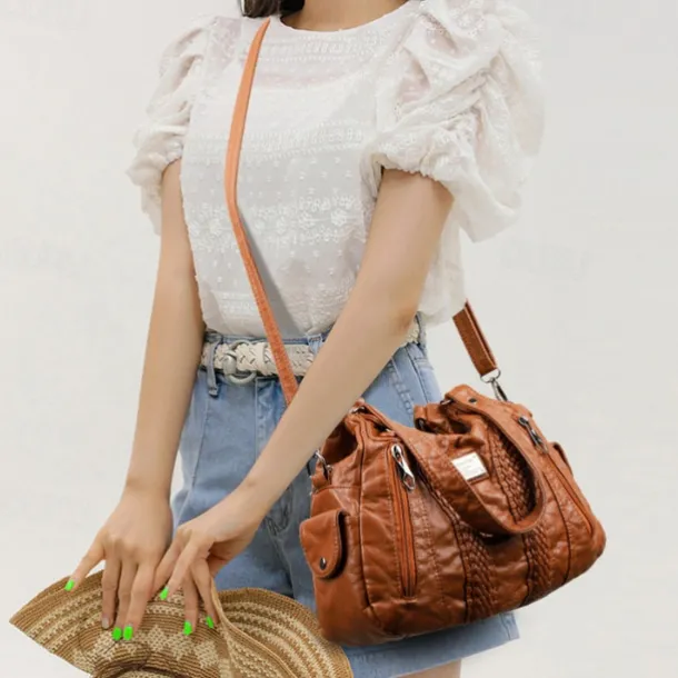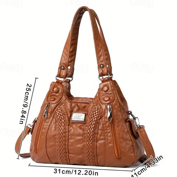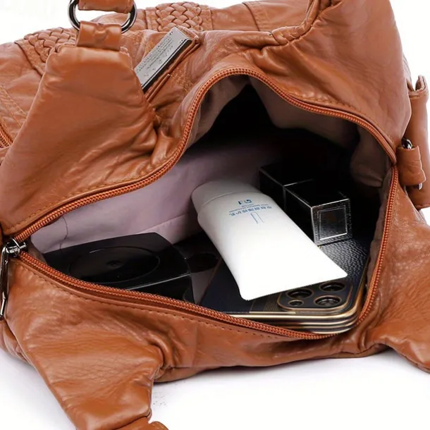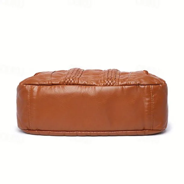 Women’s Brown Quilted Faux Leather Handbag – Stylish Zippered Tote with Braided Detailing & Adjustable Strap for Work, Travel & Casual Outings