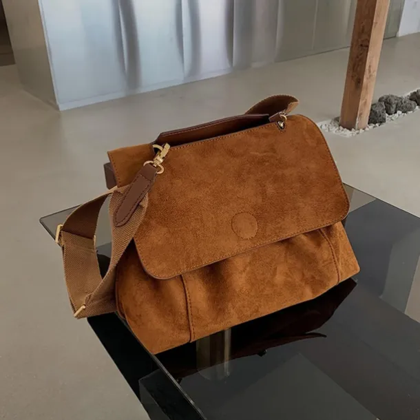 Women’s Brown Suede Messenger Bag with Adjustable Strap – Casual Shoulder Bag for Work, Travel, and Everyday Use