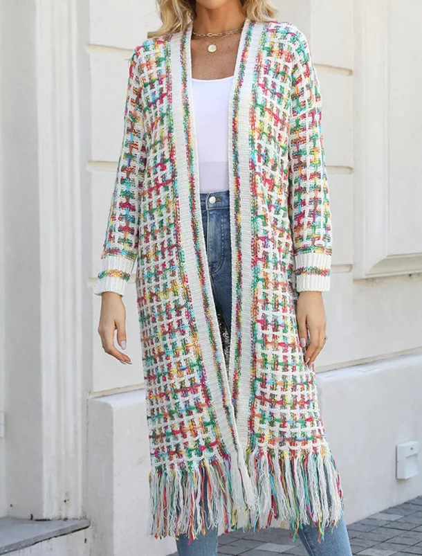 Elevate your casual wardrobe with this stylish geometric patterned V neck cardigan. Designed for a loose and comfortable fit, this versatile piece is perfect for layering and adding a touch of chic to any outfit.