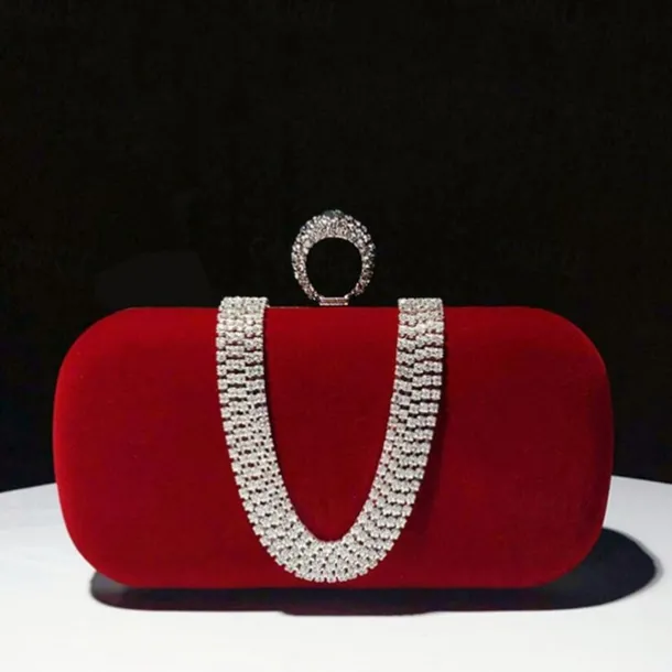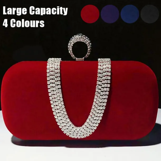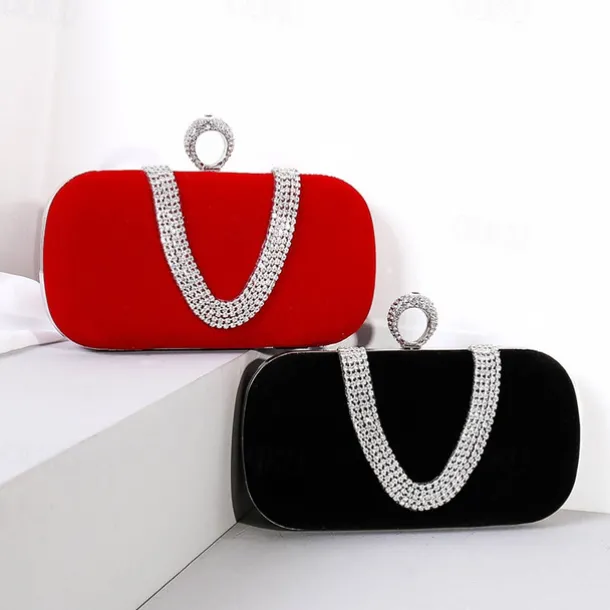 Women’s Clutch Evening Bag Wristlet Clutch Bags Velvet Party Valentine’s Day Bridal Shower Rhinestone Crystals Chain Large Capacity Lightweight Durable Solid Color Black Red Blue
