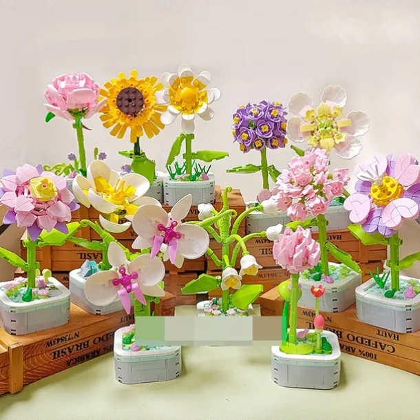 Women’s Day Gifts Sunflower Hibiscus Eternal Flower Building Block Small Particle Puzzle Assembly Toy Potted Plant Decoration Couple Valentine’s Day Gift Mother’s Day Gifts for MoM