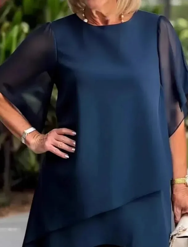 – Classic crew neckline for a timeless look