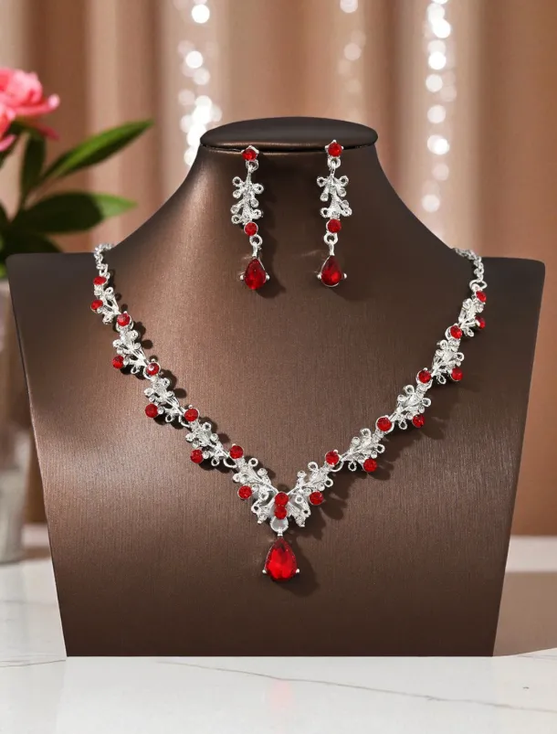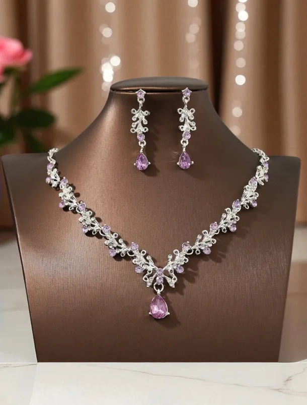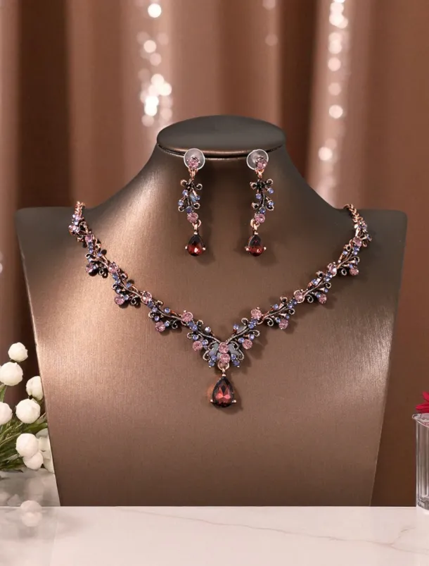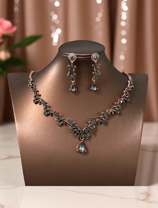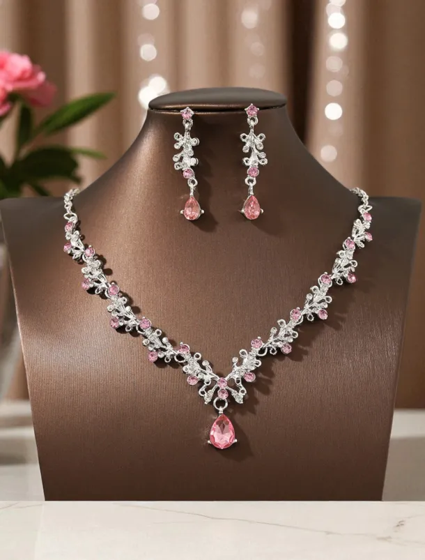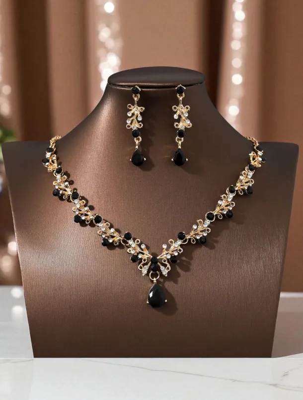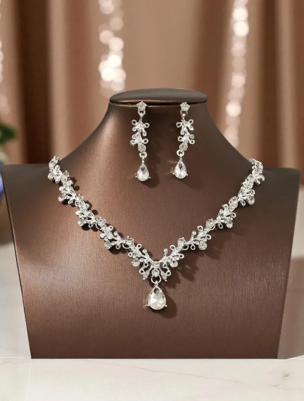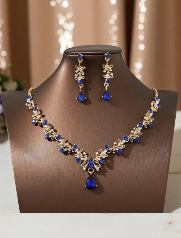 Women’s Elegant Gold-Plated Necklace and Earrings Set with Sparkling Teardrop Crystals – Luxury Jewelry for Weddings, Parties, and Formal Events