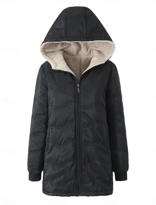 Women’s Fleece Jacket Teddy Coat Hoodie Jacket Warm Breathable Zipper Pocket Fleece Lined Casual Plain Vacation Street Daily Wear Going out Zipper Regular Hoodie Regular Fit Long Sleeve Outerwear