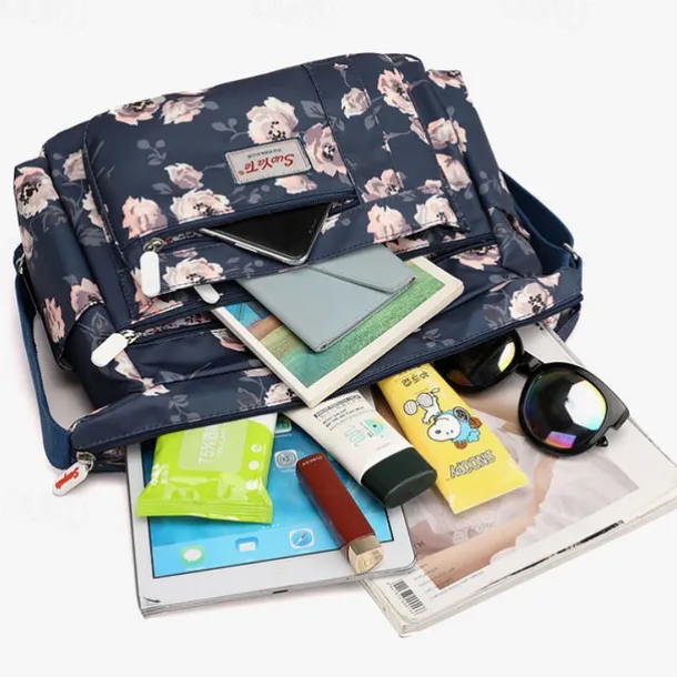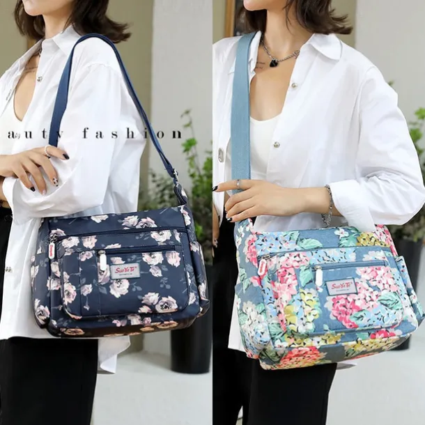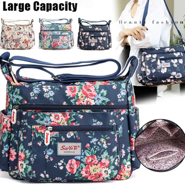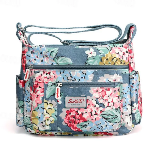 Women’s Floral Print Crossbody Bag – Lightweight Water-Resistant Multi-Pocket Shoulder Bag for Daily Use