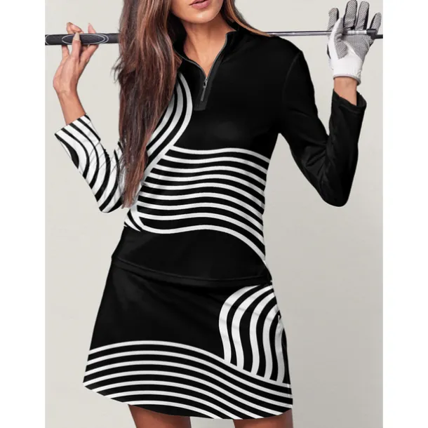 Women’s Golf Polo Shirt Black Long Sleeve Top Stripe Ladies Golf Attire Clothes Outfits Wear Apparel
