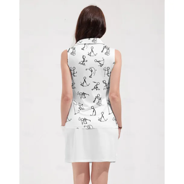 Women’s Golf Polo Shirt Black White Sleeveless Top Cartoon Ladies Golf Attire Clothes Outfits Wear Apparel