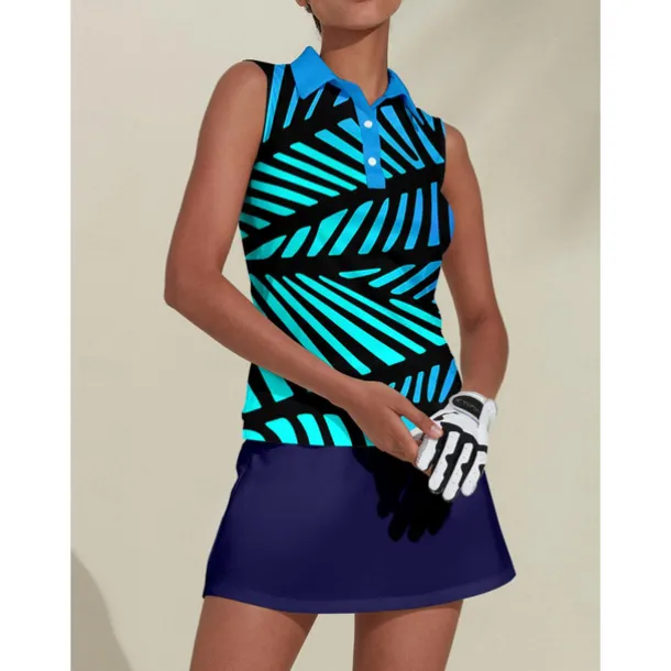 Women’s Golf Polo Shirt Blue Sleeveless Top Ladies Golf Attire Clothes Outfits Wear Apparel