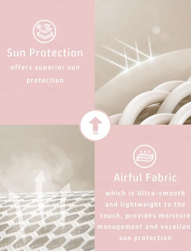 ② Airful Fabric which is Ultra-smooth and lightweight to the touch, provides moisture management and excellent sun protection