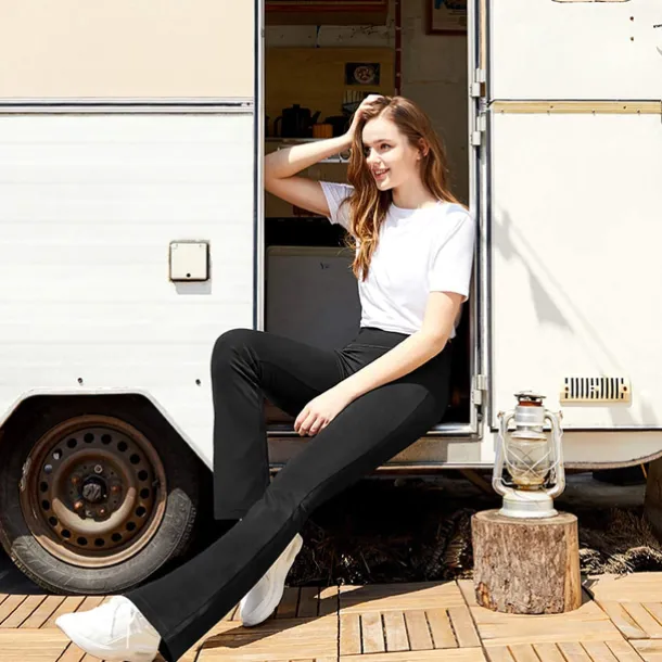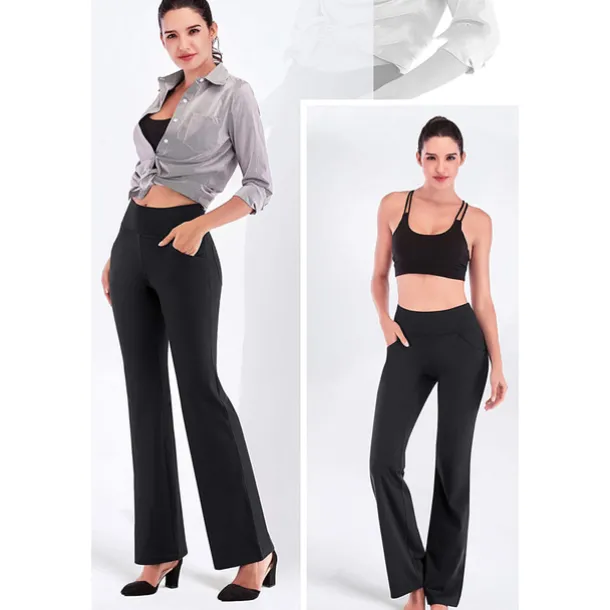 – Add some flair to your outfit with the trendy flare leg and bootcut style of these pants.