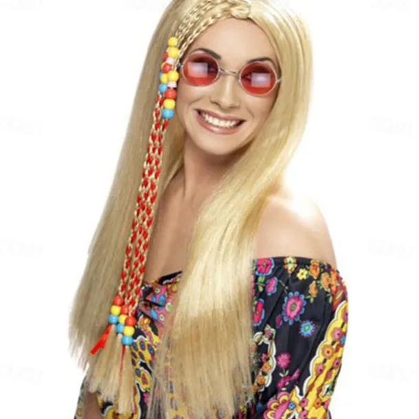 Women’s Hippy Party Wig Long Straight Blonde Synthetic Wigs