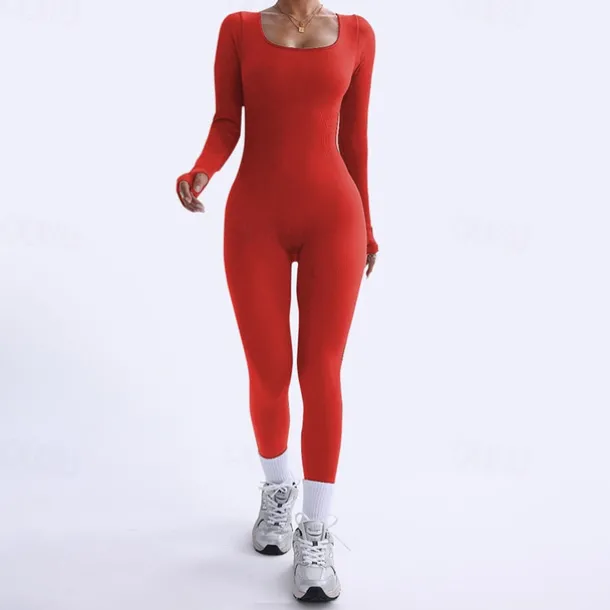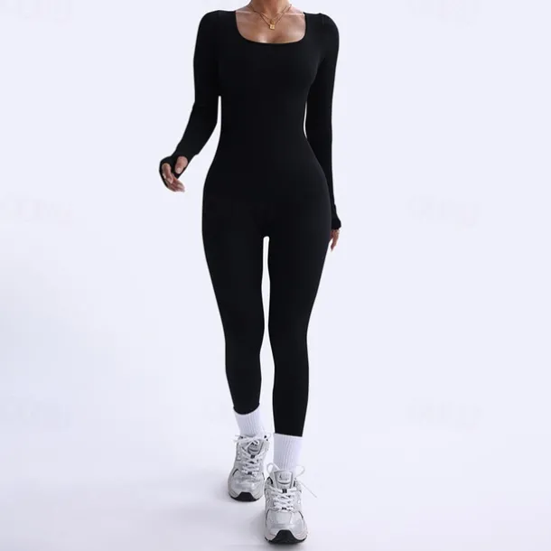 Women’s Jumpsuit Workout Jumpsuit Onesie Basic Solid Color Bodysuit Romper Black Blue Yoga Fitness Gym Workout Breathable Soft Long Sleeve Sport Activewear Stretchy Slim