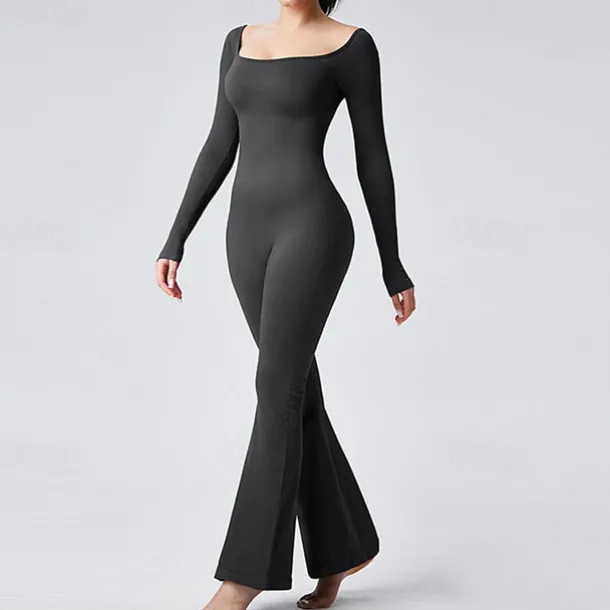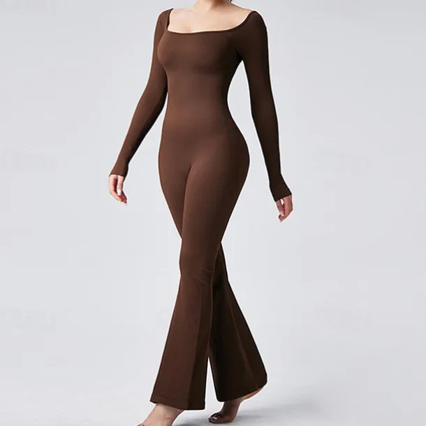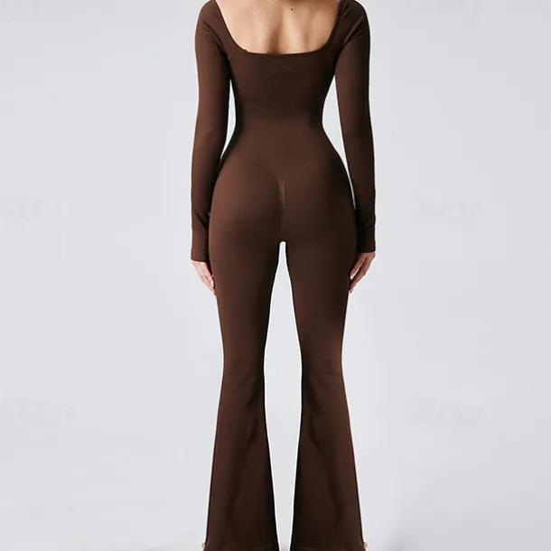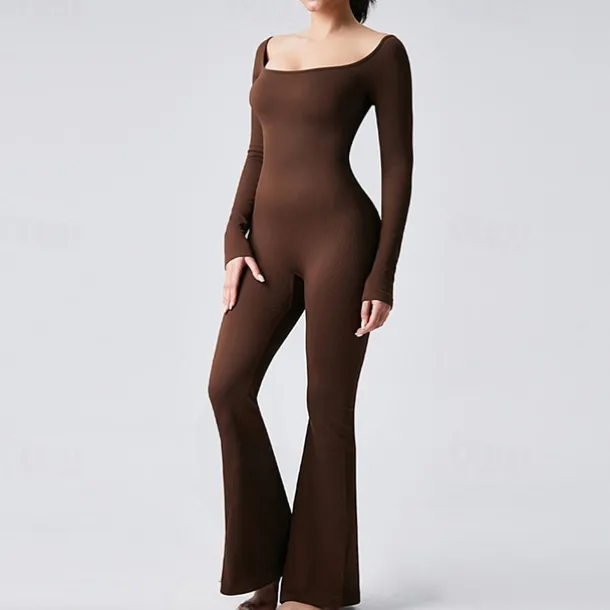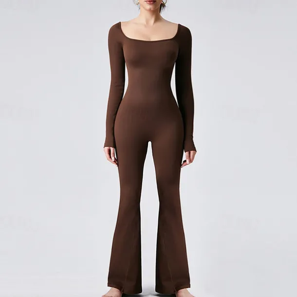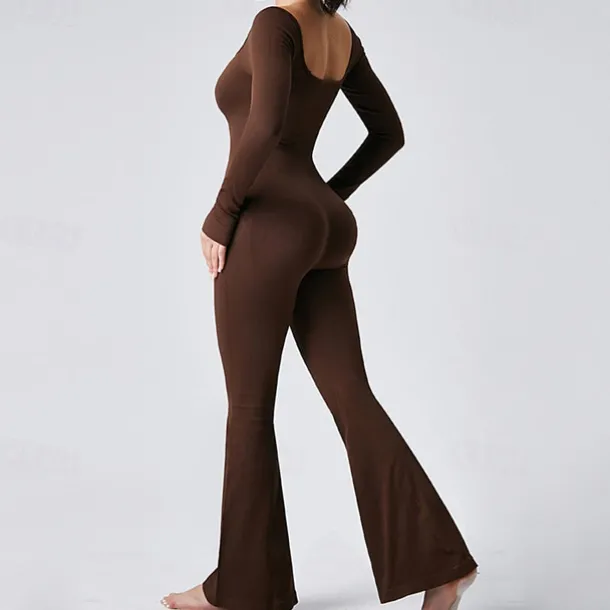 Women’s Jumpsuit Workout Jumpsuit Onesie Flare Leg Solid Color Bodysuit Romper Black Coffee Yoga Fitness Gym Workout Breathable Soft Long Sleeve Sport Activewear Stretchy Slim