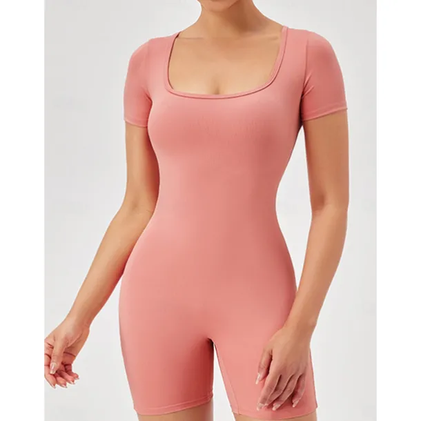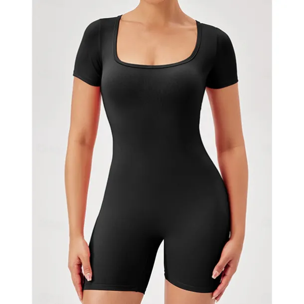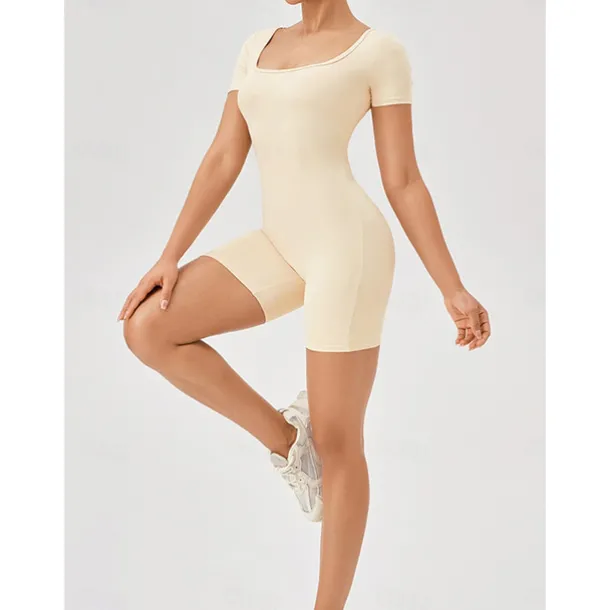 Women’s Jumpsuit Workout Jumpsuit Onesie Solid Color Bodysuit Romper rice white Black Yoga Fitness Gym Workout High Waist Breathable Soft Short Sleeve Sport Activewear Micro-elastic Slim