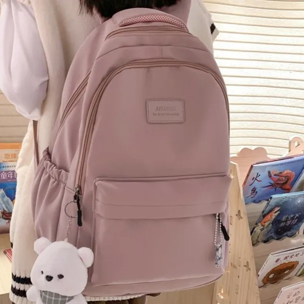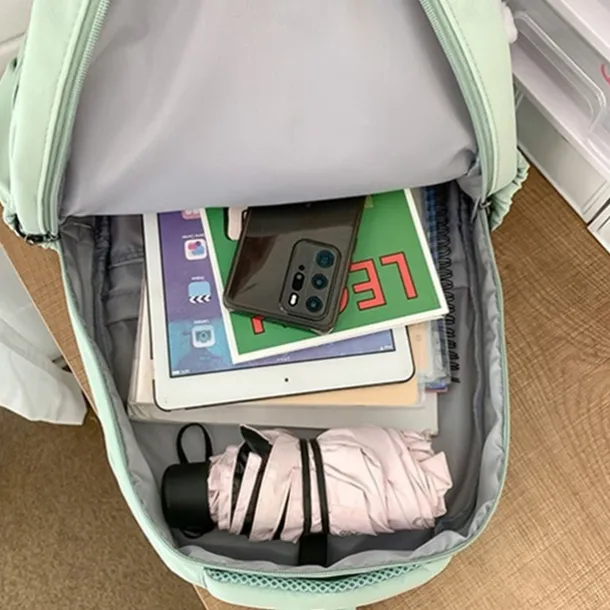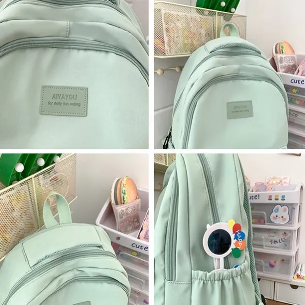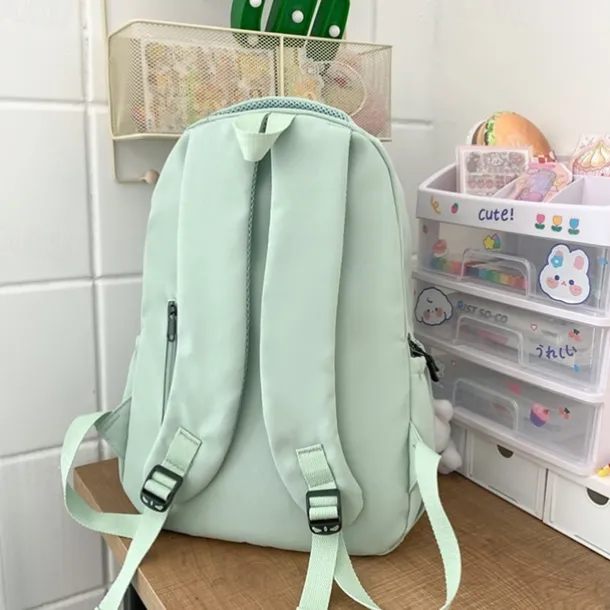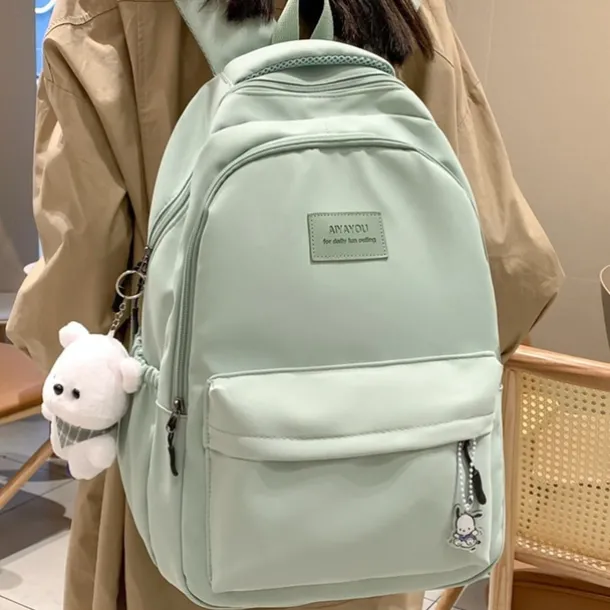 Women’s Light Green School Backpack with Cute Plush Bear Keychain, Large Capacity Multi-Pocket Waterproof Bookbag for Teen Girls, College, and Daily Use