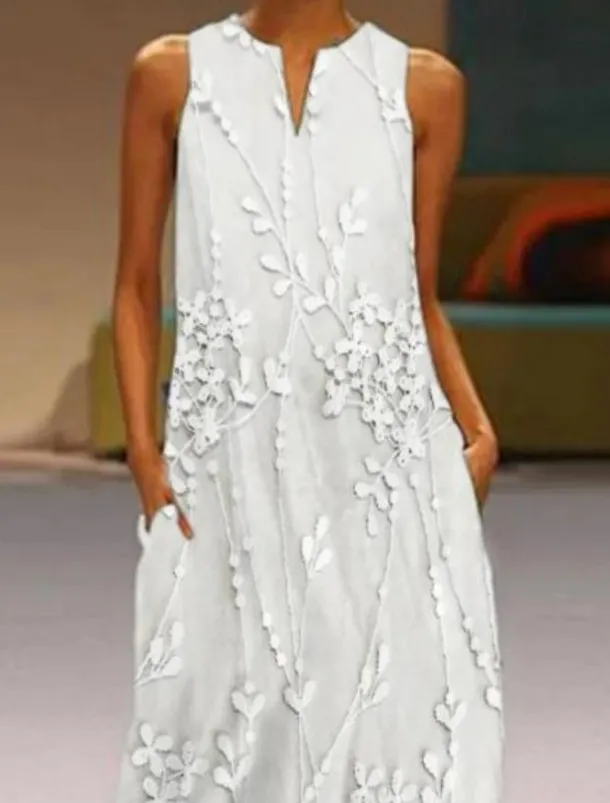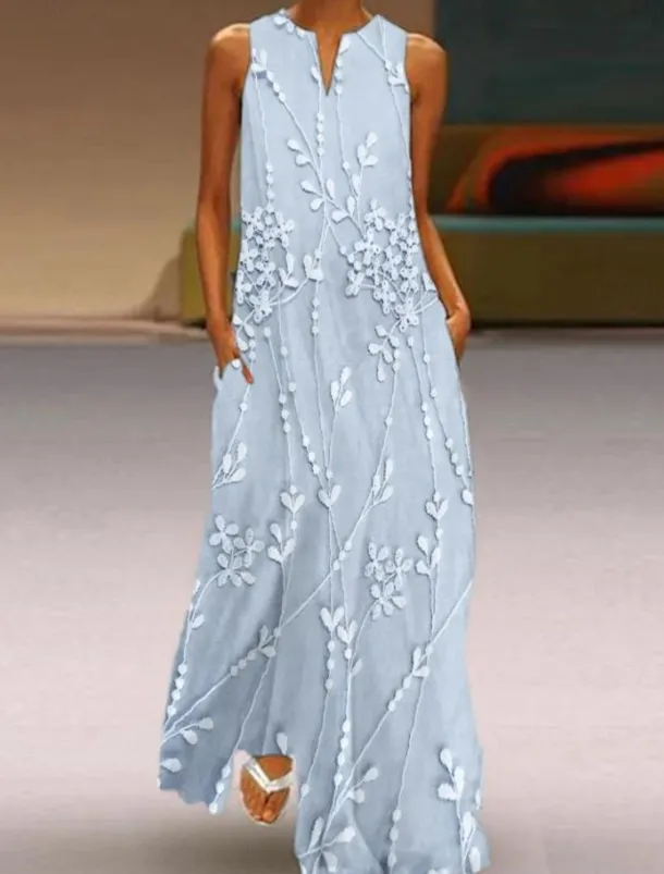 Women’s Maxi Dress Tank Dress Stylish Vacation Regular Fit 3D Print Floral Color Block Sleeveless Split Neck Pink Blue Beige Summer