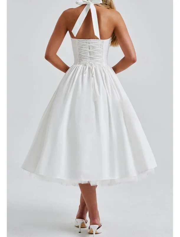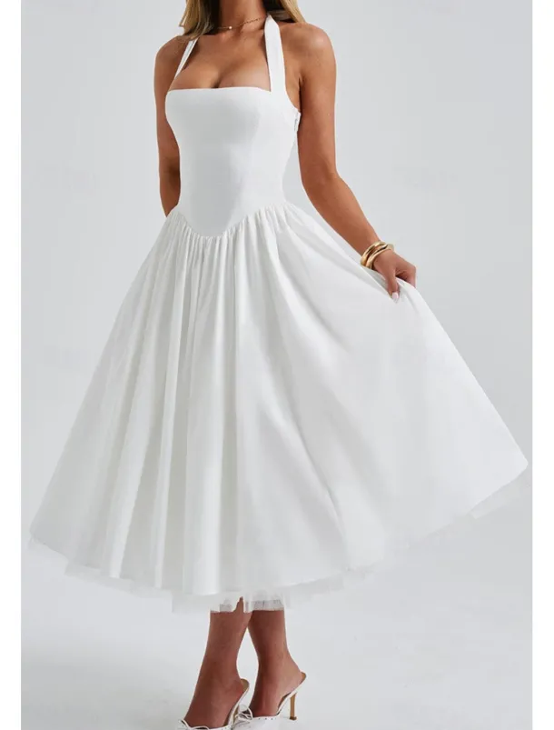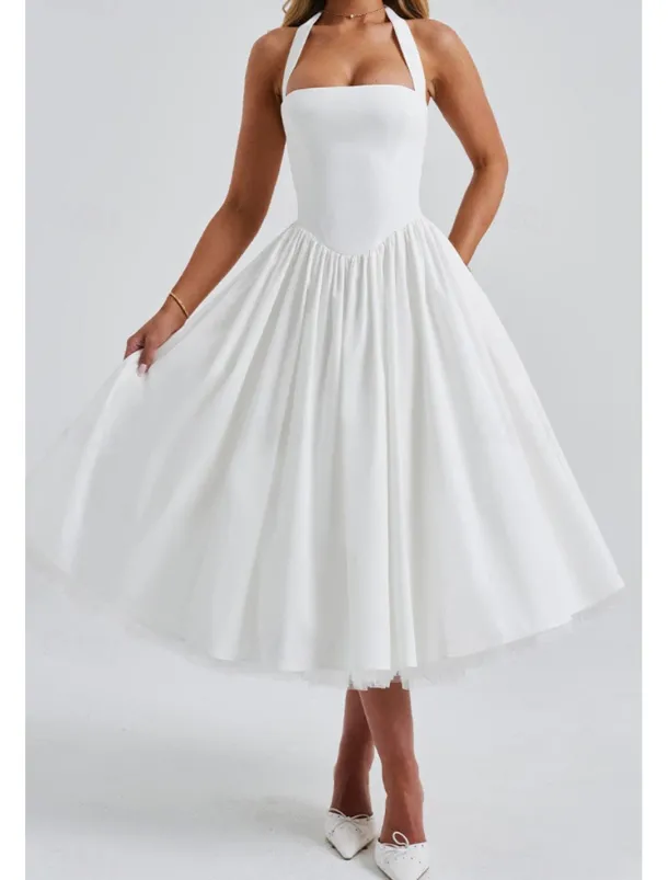 – Classic white midi dress design for women