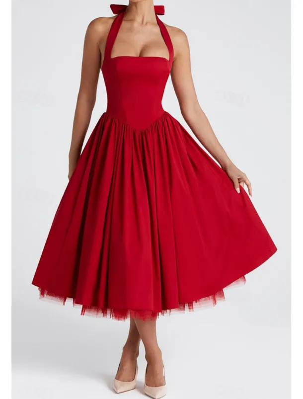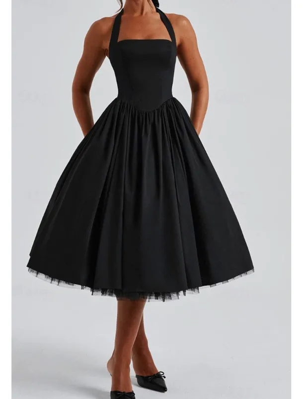 – Stylish halter neck neckline