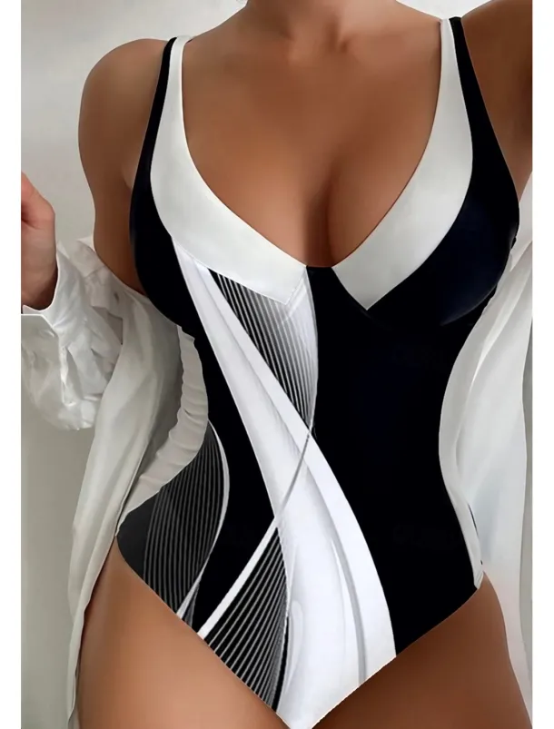 3. Pattern: The swimwear features a geometric pattern, adding a touch of uniqueness and modernity to your beach or poolside look.