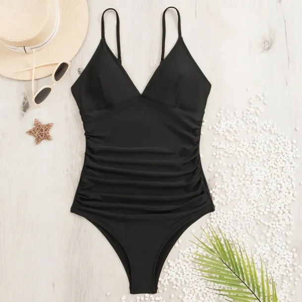Women’s One Piece Swimsuit Deep V Swimwear Solid Colored Swimwear Black Breathable Quick Dry Lightweight Sleeveless – Swimming Surfing Beach Summer Spring