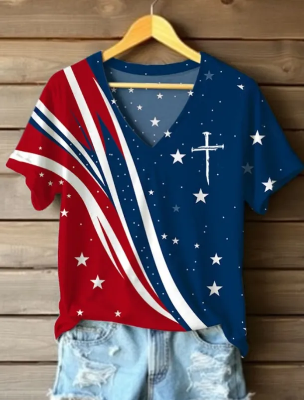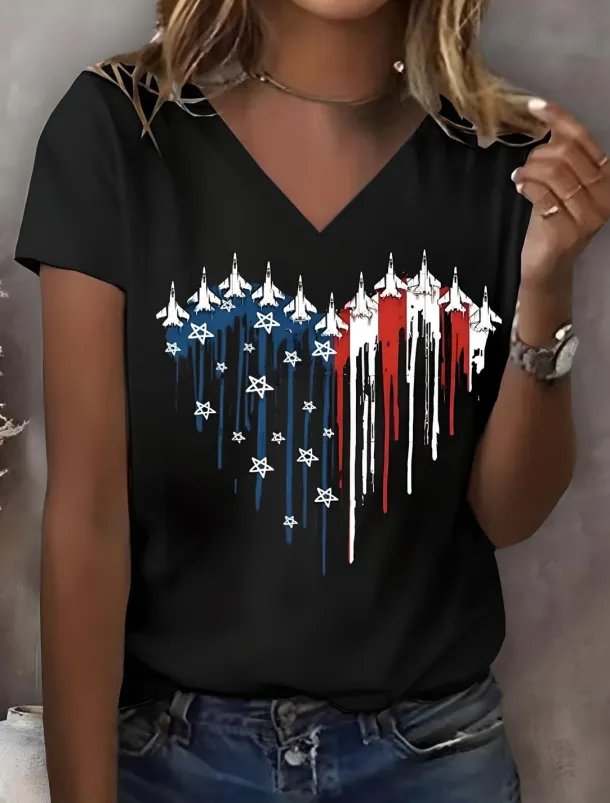 – Flattering V-neck neckline