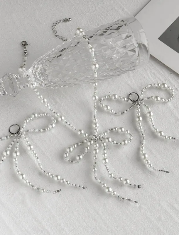 Women’s Pearl Bow Necklace and Drop Earrings Set – Elegant Statement Jewelry for Fashion Parties and Cocktail Events
