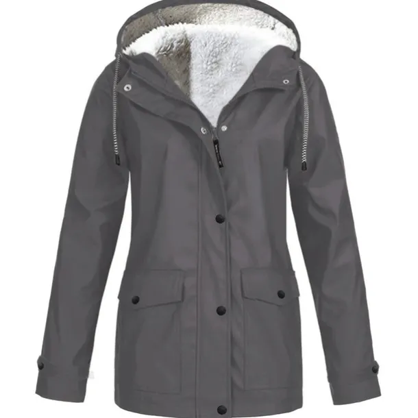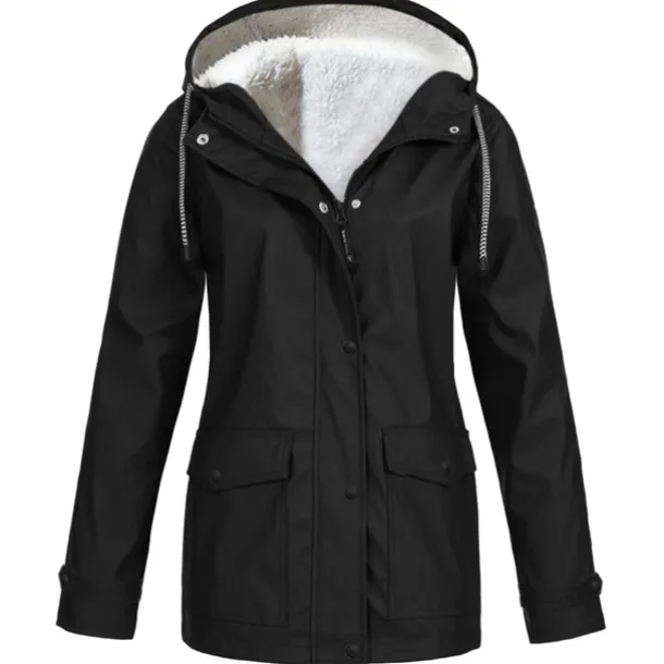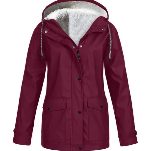 Women’s Rain Jacket Raincoat Hiking Fleece Jacket Winter Outdoor Warm Waterproof Windproof Fleece Hooded Parka Outerwear Windbreaker Trench Coat Top Full Zip Skiing Fishing Casual