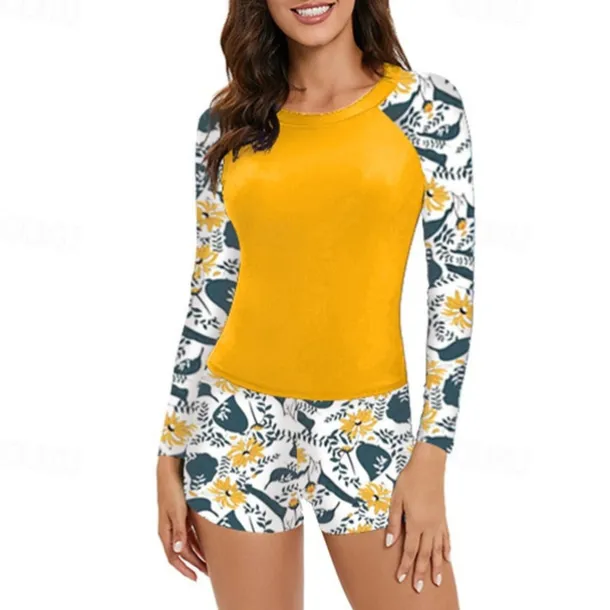 Women’s Rash guard Swimsuit UV Sun Protection UPF50+ Lightweight Long Sleeve Spandex Swimwear Swimsuit 2 Piece Swimming Surfing Beach Water Sports Floral Summer Spring Autumn