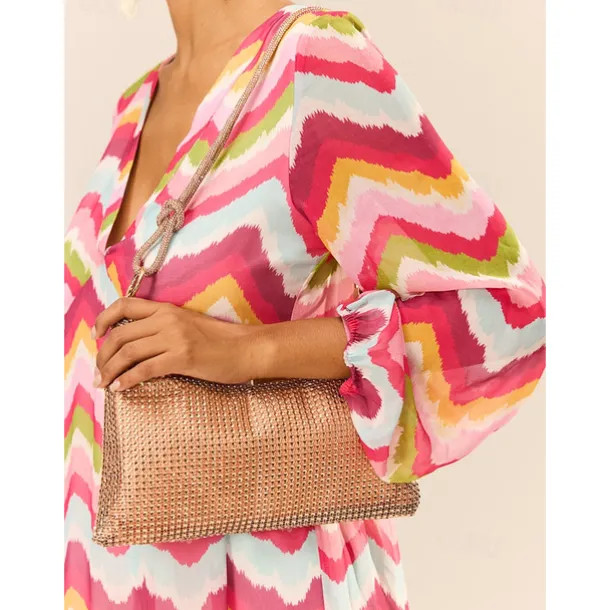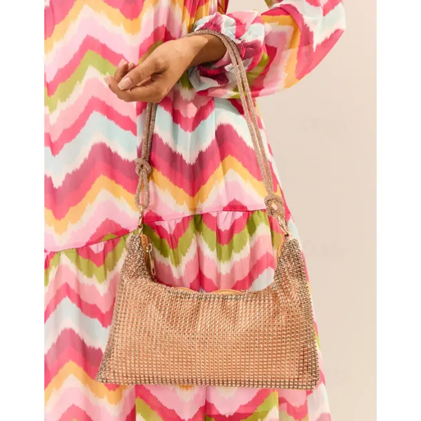 Indulge yourself with this elegant evening bag, perfect for any special occasion. Made with high-quality materials and exquisite craftsmanship, this bag exudes luxury and sophistication. Its compact size allows for easy carrying while still having enough space for all your essentials. Stand out from the crowd and make a statement with this timeless accessory.