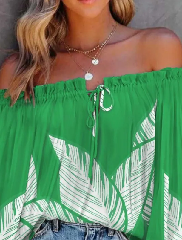 – Flattering off-shoulder neckline