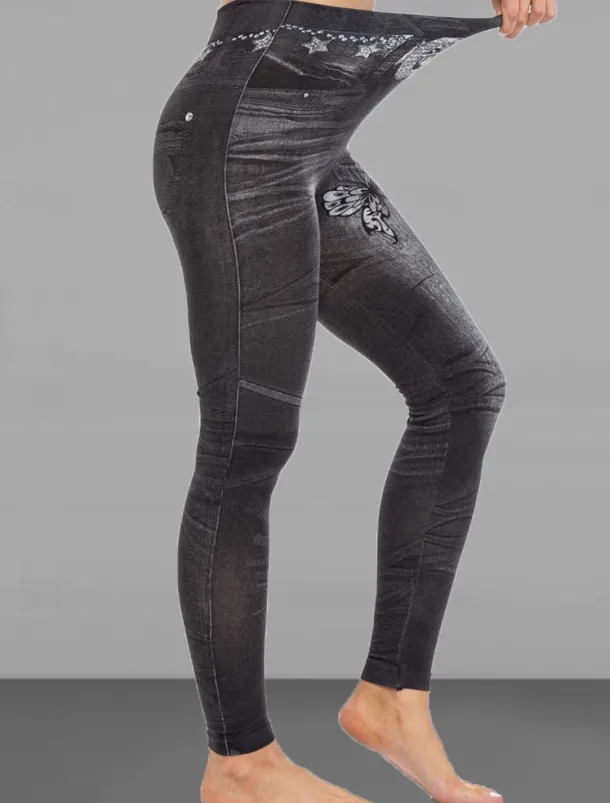 – Fabric: Made with faux denim material, providing a stylish and comfortable wear.
