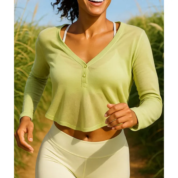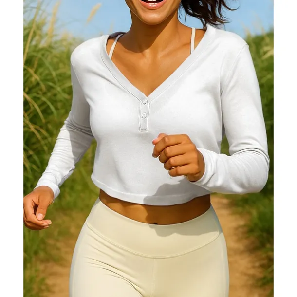Women’s Sweatshirt Running Top Running Shirt henley shirts Buttons Pullover Long Sleeve Top V Neck Breathable Lightweight Tennis Golf Running Sportswear Activewear Solid Colored Black White Brown