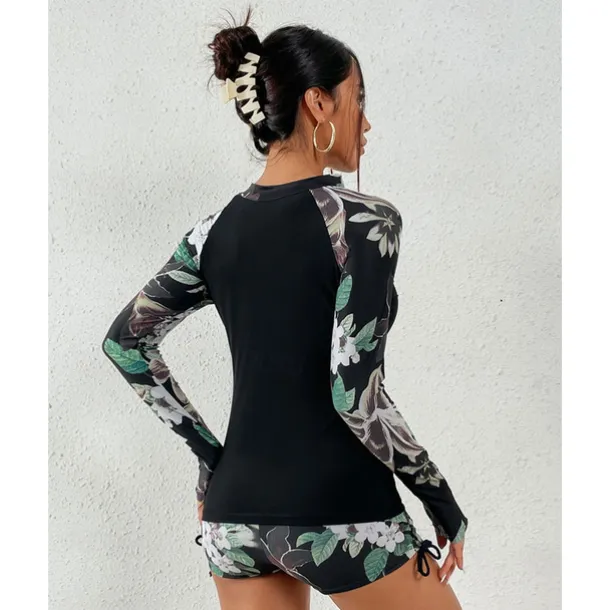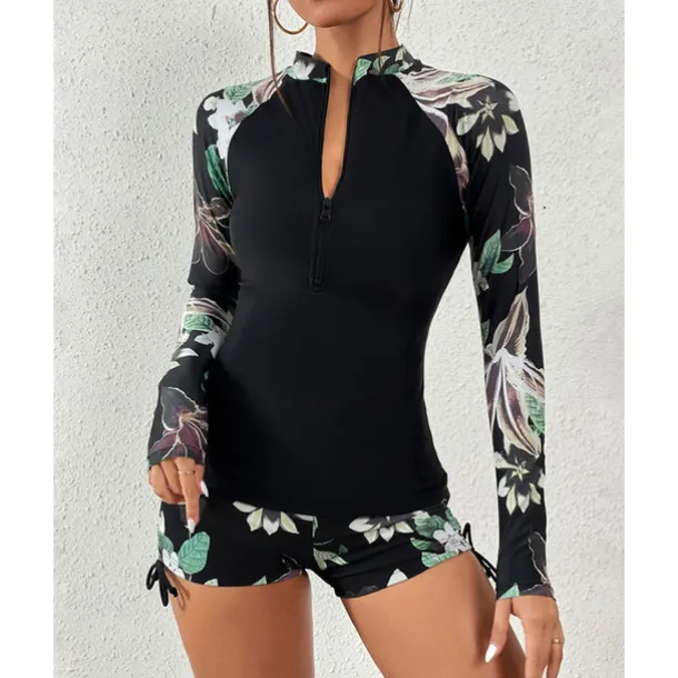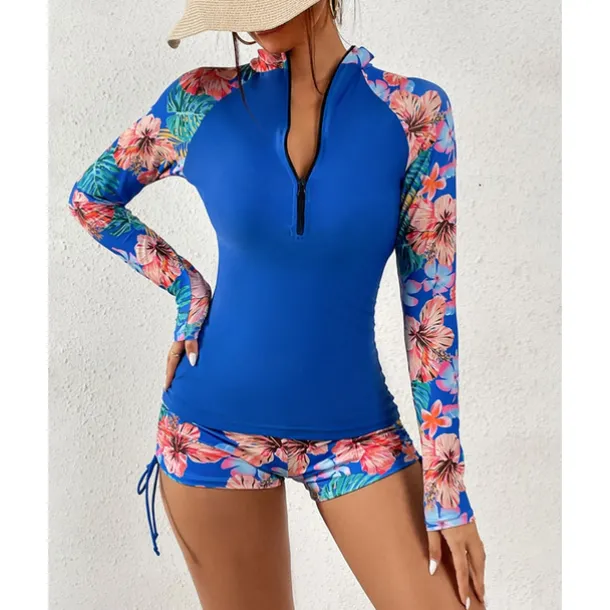 Women’s Swim Shorts Rash guard Swimsuit Lightweight Long Sleeve Swimwear Swimsuit 2 Piece Front Zip Swimming Surfing Beach Water Sports Floral Printed Summer Spring Autumn