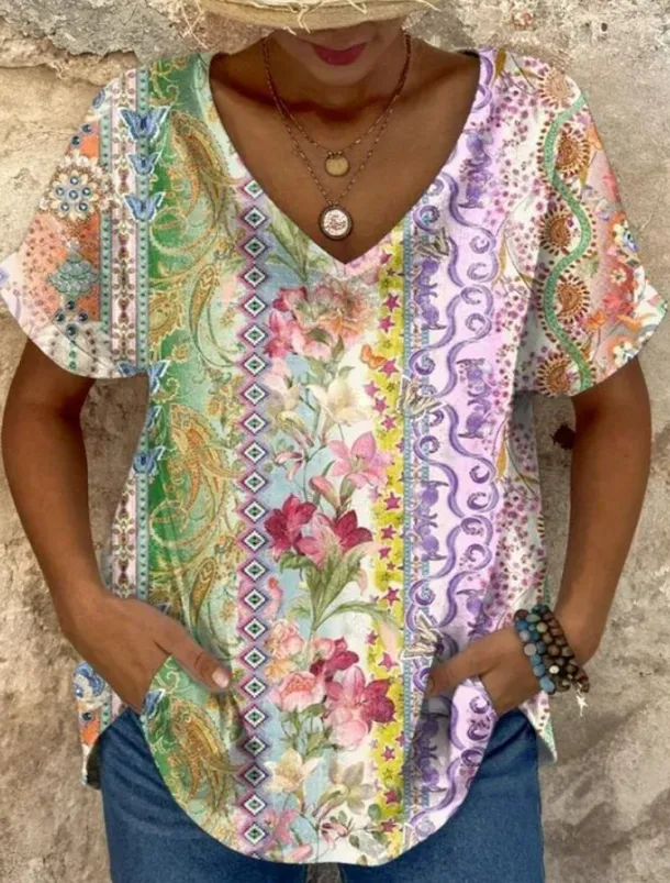 – Flattering V-neck neckline